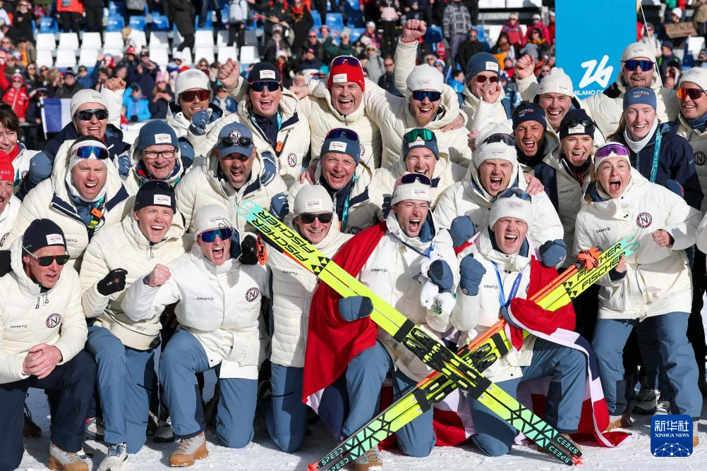 2月20日,挪威队在比赛后庆祝。