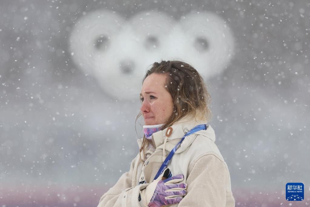 2月21日,冠军法国选手米舍隆在颁奖仪式上流泪。
