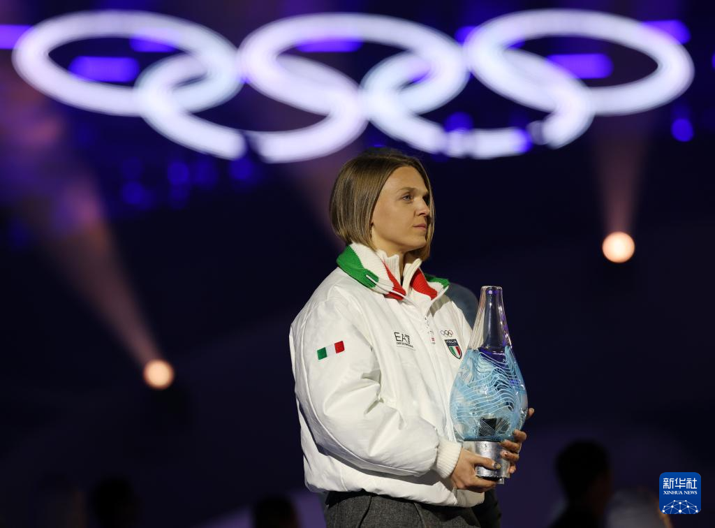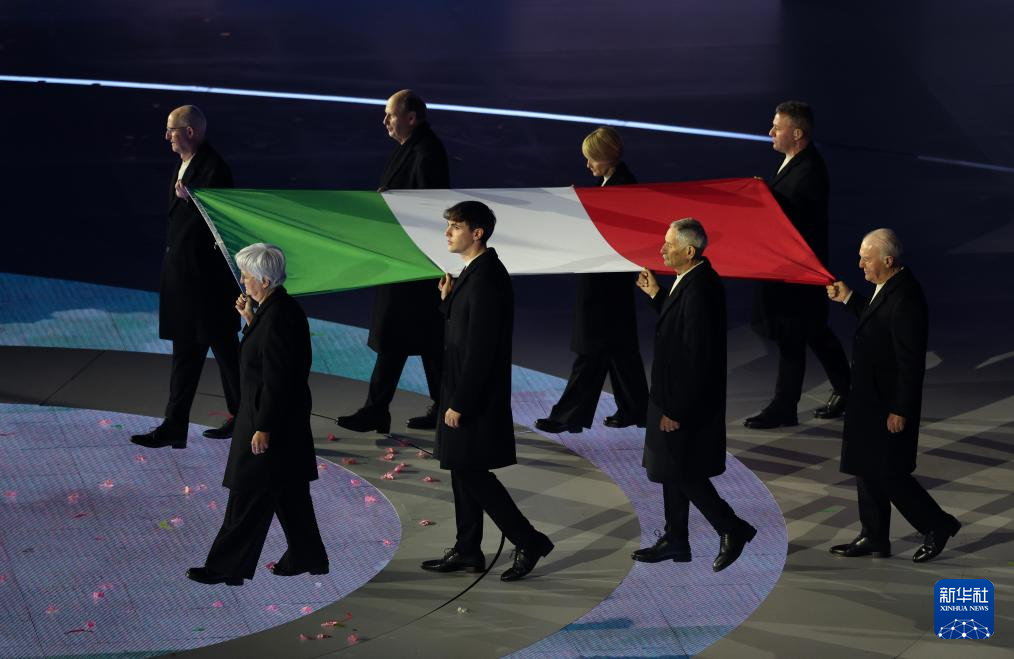 这是2月22日在闭幕式现场拍摄的意大利国旗。