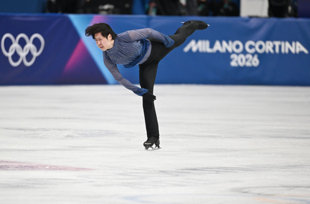2月13日,中国选手金博洋在自由滑比赛中。新华社记者 程敏 摄