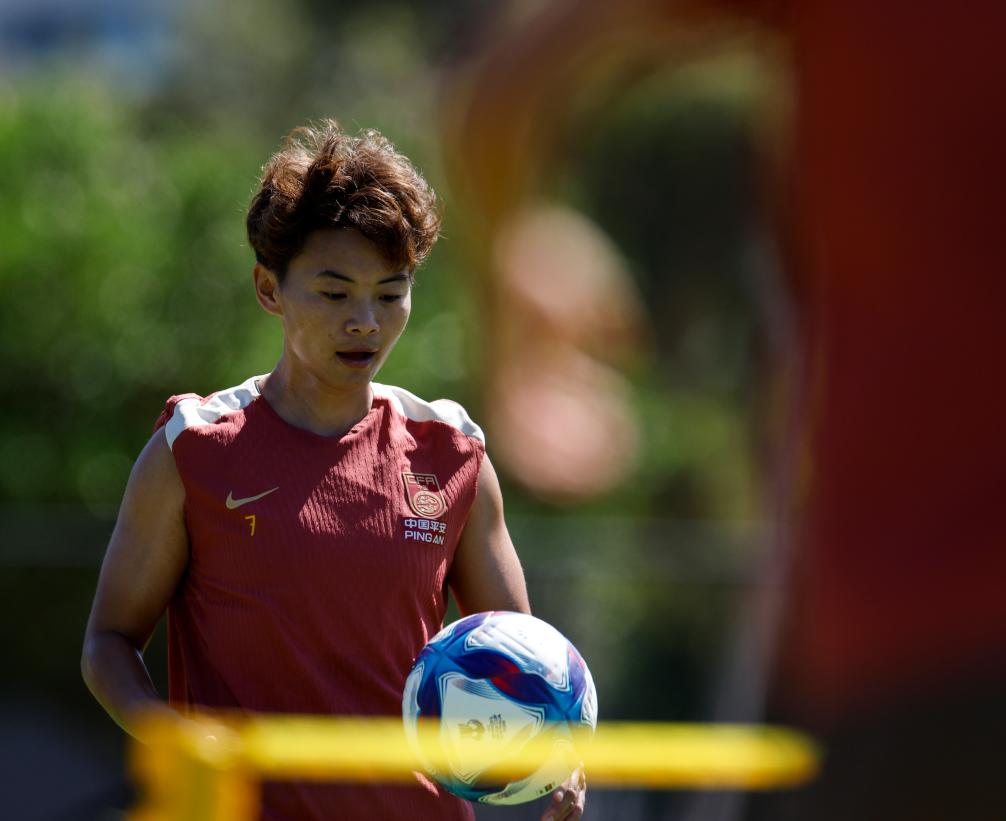 ↑2月26日,中国女足队长吴海燕在训练中。新华社发(王霜摄)