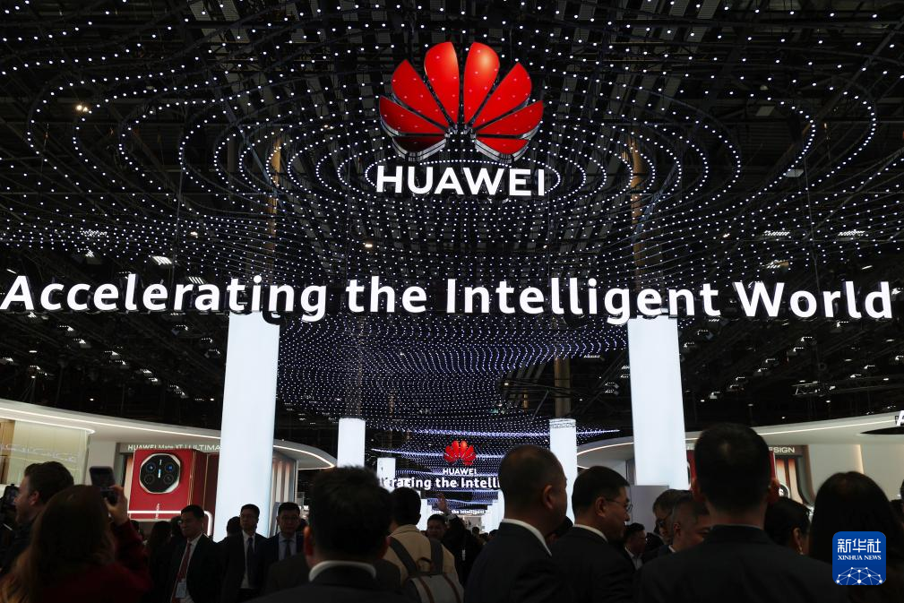 3月3日,在西班牙巴塞罗那举行的2025年世界移动通信大会上,人们参观华为展区。