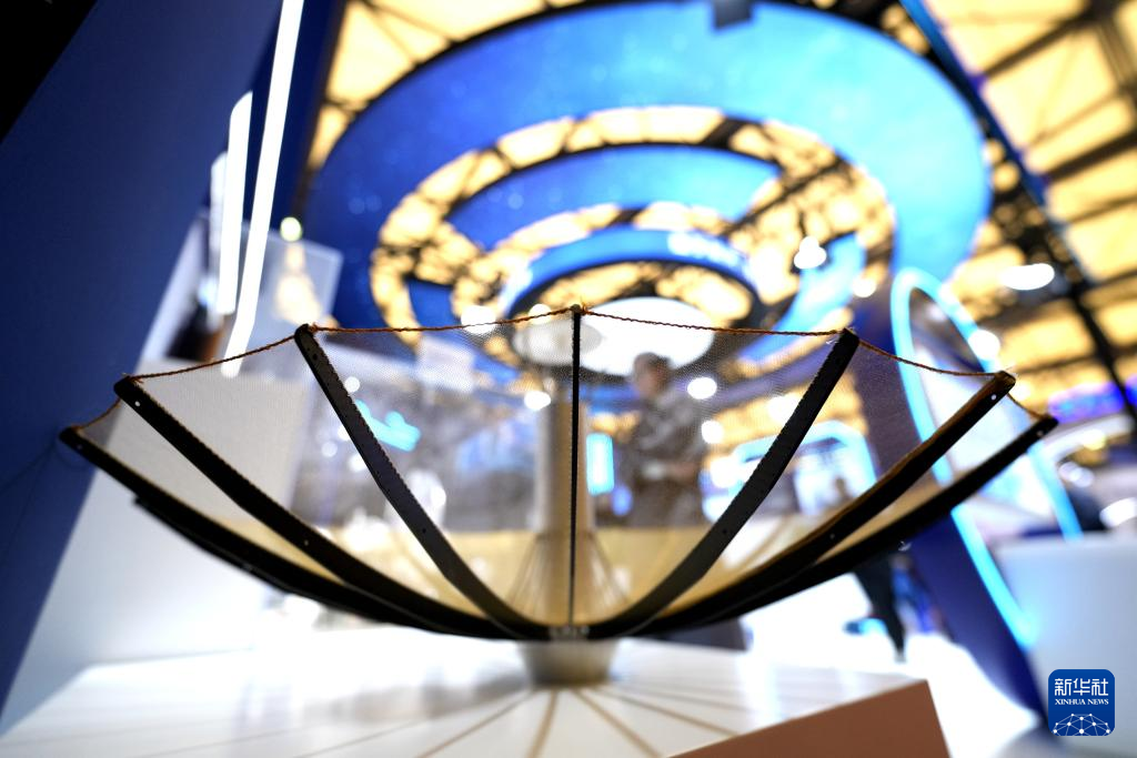 3月12日在2026首届上海商业航天大会暨展览会上拍摄的一款柔性金属网伞状天线。