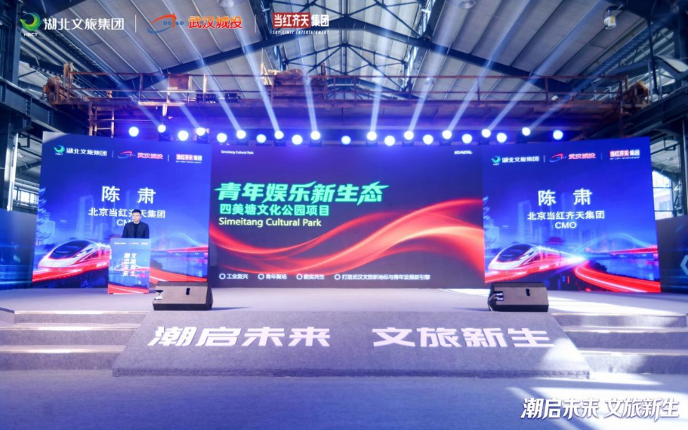 在发布会上,湖北文旅集团携手武汉城投集团、北京当红齐天集团一起掀开了四美塘项目的面纱。四美塘项目将锚定百万青年消费群体,以“工业遗址+在地文化+科技+商业”为融合公式,打造华中首个青年娱乐新生态样板。项目一期将打造高端Livehouse、艺术与电竞主题酒店集群,以及汇聚主理人店、互动娱乐、特色美食的沉浸式商业街区。未来,这里将成为武汉市乃至华中地区“首演、首发、首展、首秀”的多元内容发生地,构建出“日游夜娱”的全时消费场景。
