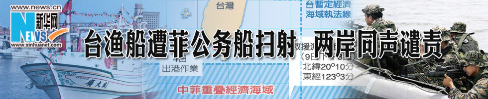 | · | 臺漁民被菲律賓公務(wù)船射殺 馬英九:絕不善罷干休 (05-10) |