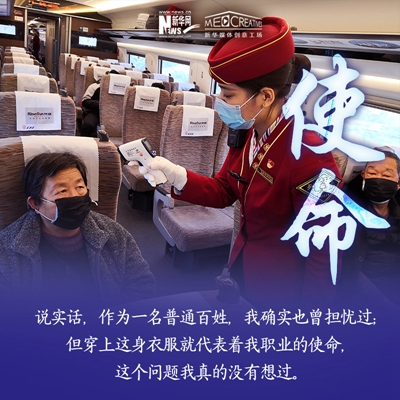 孫碩,北京客運(yùn)段京廣高鐵車隊(duì)的列車長之一。進(jìn)入高鐵工作8年時間,其中7次大年三十在值乘任務(wù)中度過,沒有陪伴家人。2020年春運(yùn),他值乘北京西至福田站的G71/72次復(fù)興號動車組列車,途徑石家莊,鄭州東,武漢,長沙南,廣州南等省會車站。他的母親作為醫(yī)護(hù)工作者,曾參與過非典時期的救援任務(wù),他雖不是醫(yī)護(hù)人員,但在這個特殊時期服務(wù)于社會,依然感到榮幸。