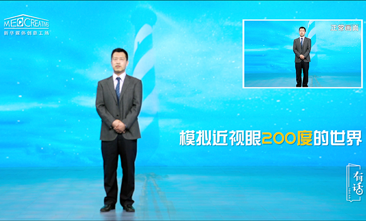 說到這,很多人就會(huì)說,近視眼戴副眼鏡就行了,對(duì)生活的影響真的這么大嗎?真的會(huì)有那么可怕的后果嗎?在這里,我給大家模擬一下,不同視力程度的人看到的世界。我們正常的眼睛看到的世界是清晰明亮的,正如您現(xiàn)在看到鏡頭里的我是清晰的,我臉上的表情你能夠看到。到了200度近視的患者眼里,世界就已經(jīng)開始變得模糊了。這個(gè)時(shí)候我在說話,我的眼睛在看著你,你還是能看得到的。在這個(gè)階段如果我們能夠采取一個(gè)合理的矯正方式,是有機(jī)會(huì)維持并且把我們的視力恢復(fù)到一個(gè)正常的范圍。