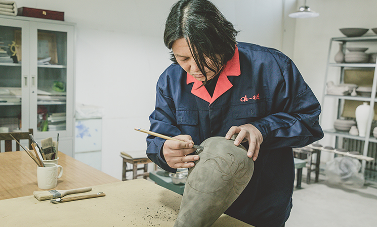 定窯白瓷溫潤如玉的釉色,象征著我們中華民族含蓄雅致的品格追求;挺拔俊朗的造型,闡釋了北方人的堅毅、果敢的性格取向;瀟灑奔逸的刻畫裝飾,顯現(xiàn)了中華文化的率真與爛漫。它把宋代社會的方方面面物化于形,形成了一個活歷史,是我們認(rèn)知歷史文化、傳承歷史文化重要的載體。原汁原味地恢復(fù)定瓷生產(chǎn)工藝,對我們真正地體味宋代文化與宋文化研究有著重大的意義。于是,我們專門成立了定瓷傳統(tǒng)工藝研究部,從事定瓷傳統(tǒng)工藝的挖掘與整理工作。從原料到燒成、從成型到裝飾、從功能到生活,真正認(rèn)識到傳統(tǒng)定瓷的價值,還原定瓷的社會意義,并找到定瓷發(fā)展的科學(xué)規(guī)律。定瓷之所以在宋代,也就是中國瓷器的高峰期占有一席之地,就是因為它具有社會文化、時代審美、最高工藝水平和最先進(jìn)科技的綜合體現(xiàn),所以我們生產(chǎn)的陶瓷在保留定瓷文化特征的同時,對陶瓷工藝流程進(jìn)行了大量的革新,把更多的、更先進(jìn)的生產(chǎn)設(shè)備應(yīng)用到了我們的生產(chǎn)當(dāng)中。
