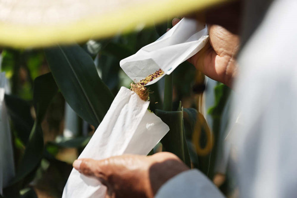 眼下的三亞陽(yáng)光明媚,春意盎然。晨曦初露,程相文就戴上草帽、穿上白大褂一頭鉆進(jìn)玉米地,領(lǐng)著助手套袋、授粉,觀察葉片、根系長(zhǎng)勢(shì)并詳細(xì)記錄,在地里一待就是五六個(gè)小時(shí)。常年高溫暴曬,程相文皮膚黝黑,摘下眼鏡后就像個(gè)農(nóng)家老漢。