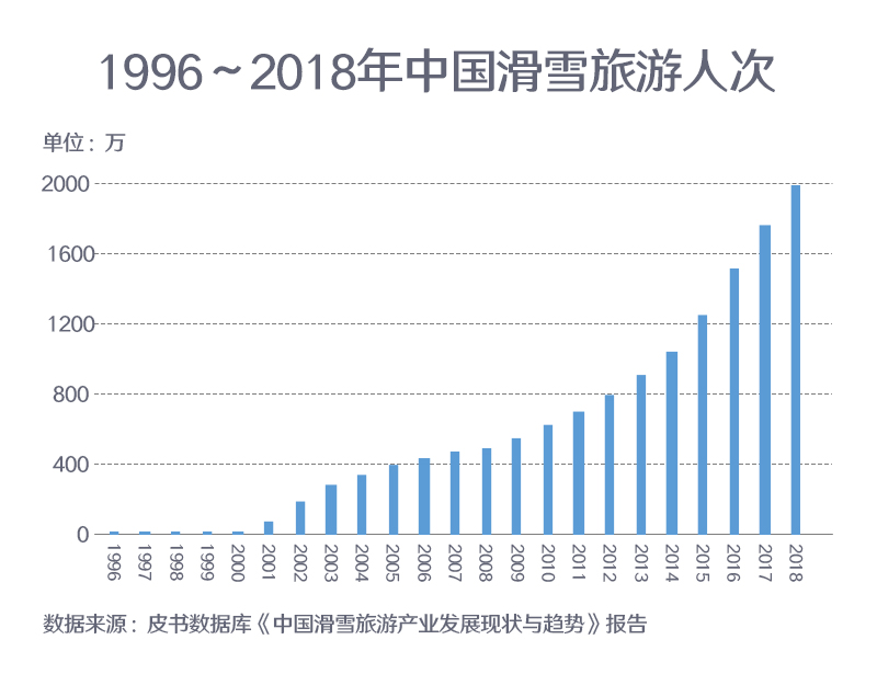 ??? 從1996年發(fā)展至今, 我國滑雪旅游人次實現(xiàn)了質(zhì)的飛躍。截至2018年底, 我國滑雪人次為1970萬, 同比增長12.57%?;邶嫶蟮幕┤舜魏褪袌鲆?guī)模,中國已被認為是全球主要滑雪市場之一,年滑雪人次已超過一些擁有成熟滑雪市場的國家。