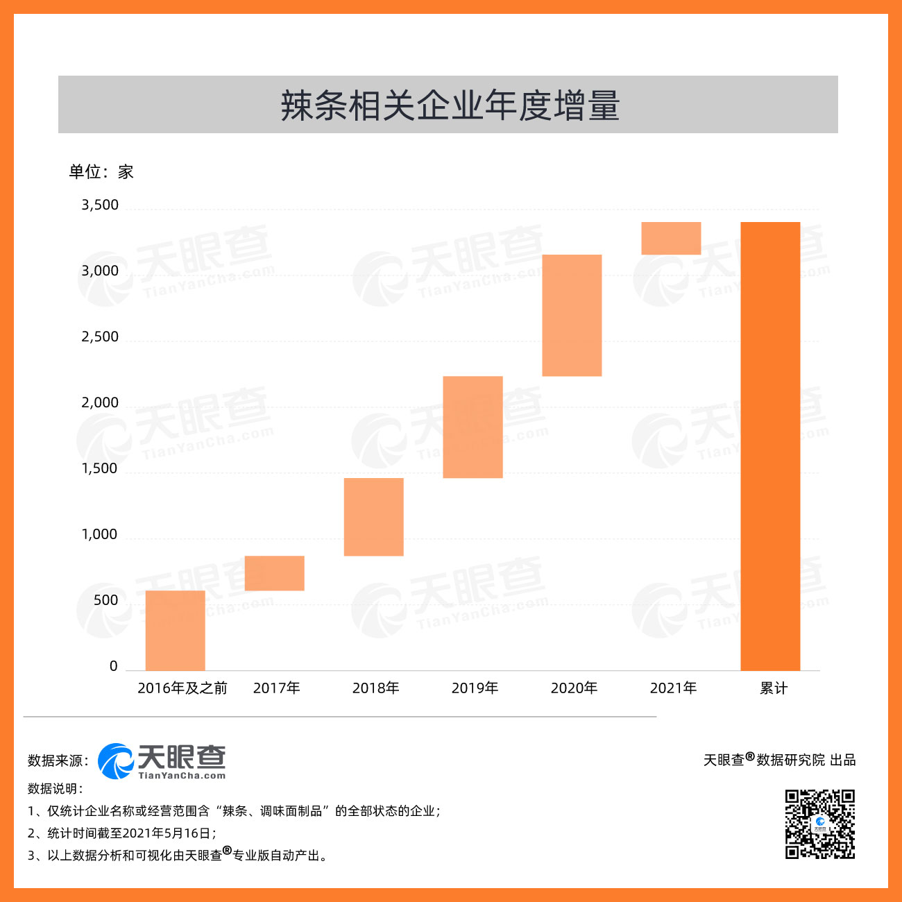 ????? 天眼查數(shù)據(jù)顯示,我國2020年新增辣條相關(guān)企業(yè)數(shù)量超900家,同比增長19%。截至5月16日,我國今年新增辣條相關(guān)企業(yè)數(shù)量已超過240家。