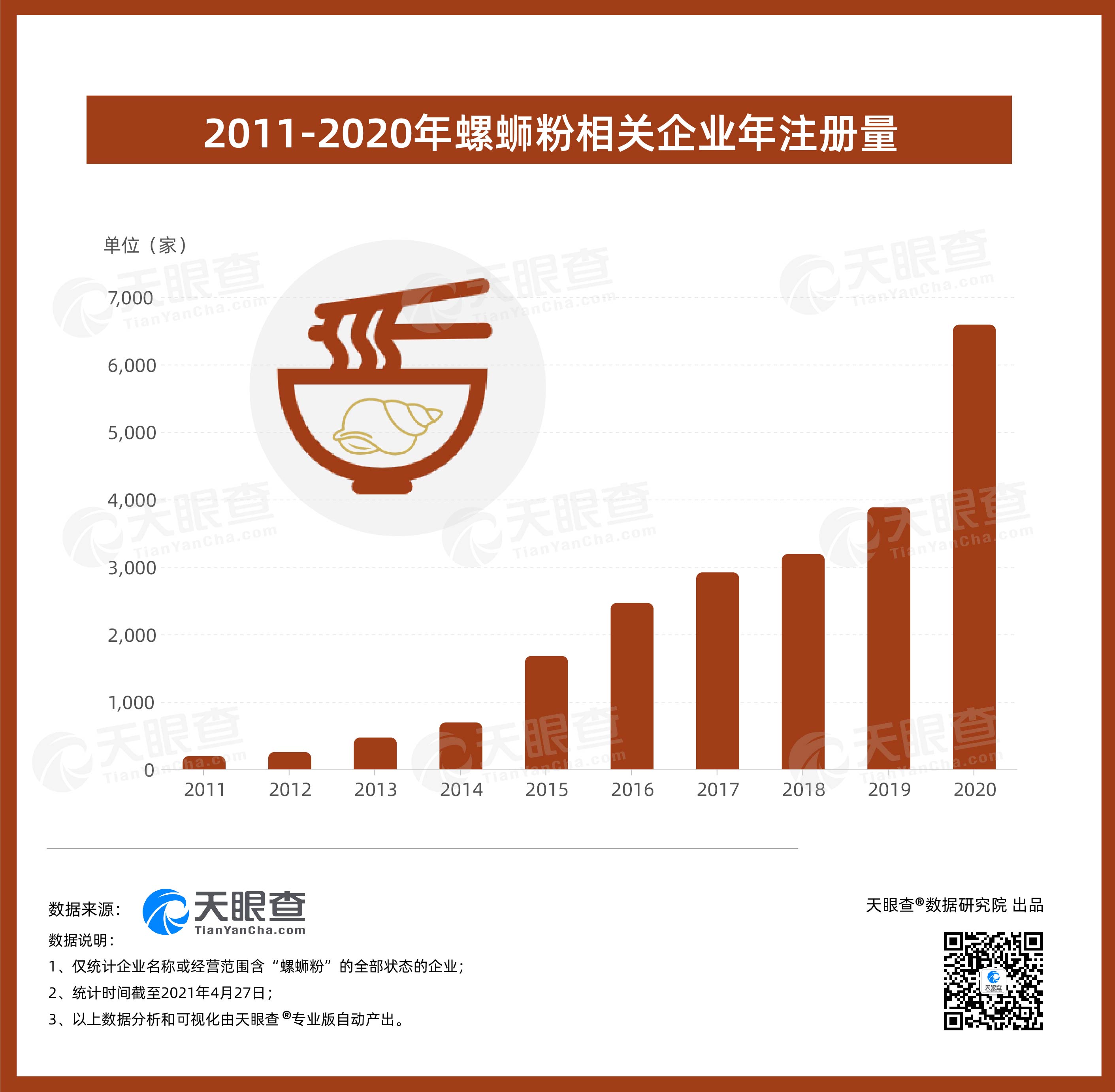 ????? 這碗起源于20世紀(jì)七八十年代夜市的地方小吃,如今是柳州最亮眼的新名片之一。從2014年底第一家袋裝螺螄粉企業(yè)誕生,到2020年產(chǎn)值超百億元,僅僅用了6年時間。袋裝螺螄粉如今遠(yuǎn)銷海外20多個國家和地區(qū),約25萬個就業(yè)崗位遍布在全產(chǎn)業(yè)鏈各個環(huán)節(jié)。天眼查數(shù)據(jù)顯示,我國目前有超1.8萬家企業(yè)名稱或經(jīng)營范圍含“螺螄粉”,且狀態(tài)為在業(yè)、存續(xù)、遷入、遷出的螺螄粉相關(guān)企業(yè)。其中,近9成的相關(guān)企業(yè)注冊時間在5年之內(nèi)。