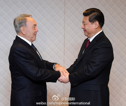 ????新華網(wǎng)北京3月24日電 據(jù)新華社“新國(guó)際”微博報(bào)道,去年金秋,習(xí)近平對(duì)哈薩克斯坦進(jìn)行國(guó)事訪問(wèn)。今年年初,中哈元首在索契冬奧會(huì)開(kāi)幕式親切交談。23日,兩人在荷蘭再次會(huì)晤。習(xí)近平歡迎納扎爾巴耶夫總統(tǒng)5月訪華并出席上海亞信峰會(huì)?!白鳛楹蛉沃飨瘒?guó)和首倡國(guó),中哈更要共同努力,將峰會(huì)辦成團(tuán)結(jié)友好、成果豐碩的盛會(huì)?!?/p>