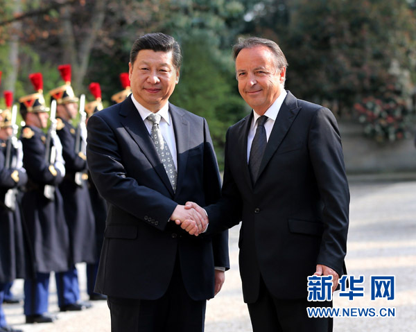 3月27日,國家主席習(xí)近平在巴黎會見法國參議長貝爾。新華社記者 龐興雷 攝