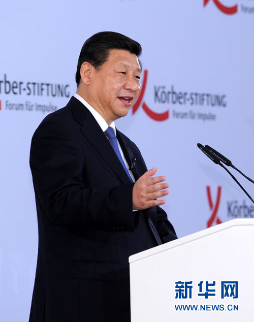 ??? 當(dāng)?shù)貢r(shí)間3月28日下午,國(guó)家主席習(xí)近平應(yīng)德國(guó)科爾伯基金會(huì)邀請(qǐng),在柏林發(fā)表重要演講。 新華社記者 饒愛民 攝