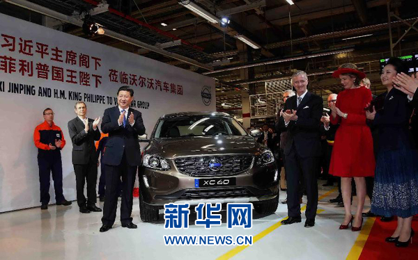 ????新華網(wǎng)比利時(shí)根特4月1日電(記者孟娜 魏建華)國(guó)家主席習(xí)近平1日上午在比利時(shí)國(guó)王菲利普陪同下參觀了沃爾沃汽車公司根特工廠。