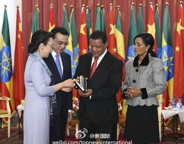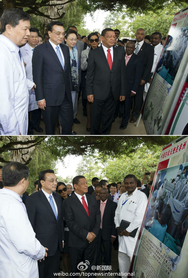 李克強(qiáng)親手為埃塞患者拆紗布 程虹向埃塞總統(tǒng)夫婦贈(zèng)書