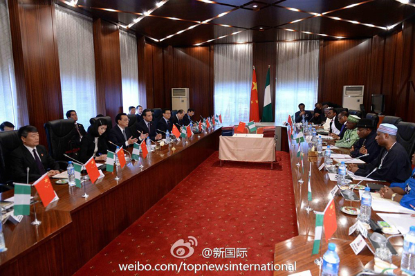 新華網(wǎng)北京5月8日電據(jù)新華社“新國際”微博報(bào)道,李克強(qiáng)總理7日與尼日利亞總統(tǒng)喬納森會談。