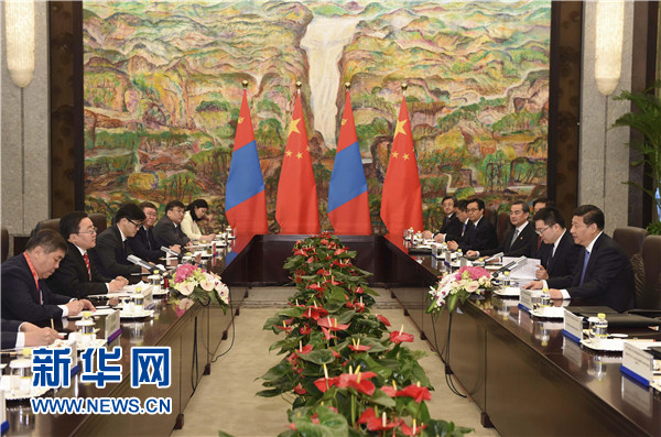 習近平強調,我十分關心和高度重視中蒙關系。兩國領導人要保持密切交往和戰(zhàn)略溝通,實實在在推進兩國合作。兩國立法機構、政黨、軍隊也要加強交往。中蒙經濟互補性強。中方開展對蒙合作堅持互利雙贏原則,不搞我贏你輸、我多你少。中方愿本著礦產資源開發(fā)、基礎設施建設、金融合作“三位一體、統(tǒng)籌推進”原則,以互聯互通建設為優(yōu)先方向,以建設絲綢之路經濟帶為契機,拓展兩國合作,鼓勵有實力的中國企業(yè)赴蒙投資興業(yè)。中方支持蒙方積極參與國際和地區(qū)事務,愿同蒙方加強在聯合國、上海合作組織等框架內合作。