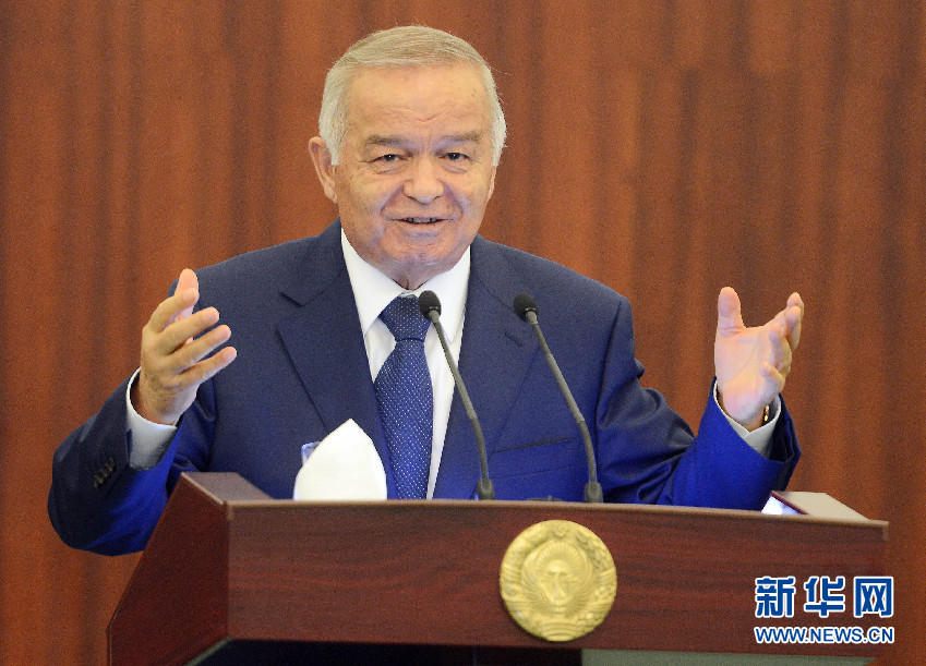 ????6月6日,在烏茲別克斯坦首都塔什干國際會(huì)議宮,烏茲別克斯坦總統(tǒng)卡里莫夫在講話。(沙達(dá)提 攝)