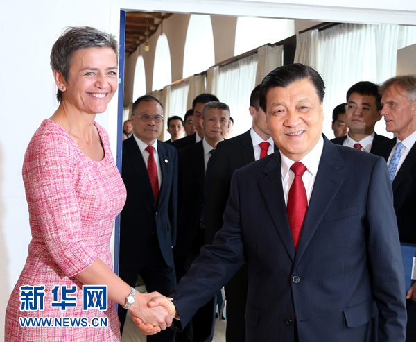 ??? 6月11日,正在丹麥進(jìn)行正式訪問的中共中央政治局常委、中央書記處書記劉云山在哥本哈根會見丹麥經(jīng)濟內(nèi)政大臣瑪格麗特·韋斯塔格。新華社記者姚大偉攝