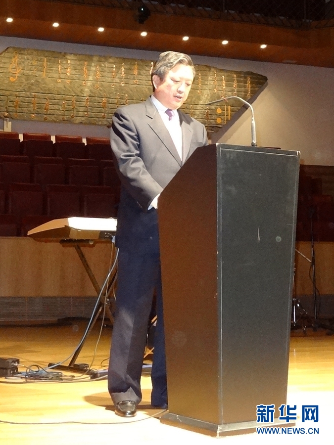 中國駐西班牙大使朱邦造在音樂會前發(fā)表致辭。新華網(wǎng) 周喆攝