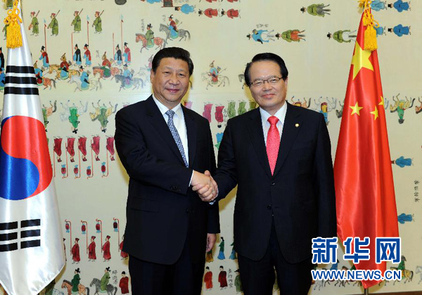 國家主席習(xí)近平4日在首爾會見韓國國會議長鄭義和以及韓國各政黨領(lǐng)袖和友好議員代表。