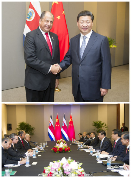 ??? 新華網(wǎng)北京7月17日電 據(jù)新華社“新國際”微博報道,習近平主席16日會見哥斯達黎加總統(tǒng)索利斯時說,中哥關(guān)系正如一棵茁壯成長的美洲象耳樹。中方愿繼續(xù)同哥方一道,把政治互信的根扎深,把互利合作的干養(yǎng)壯,使人文交流的葉繁茂,使中哥關(guān)系這棵大樹果實累累。(攝影:謝環(huán)馳)?