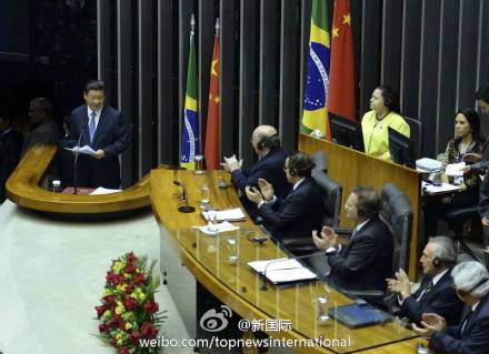 ??? 新華網北京7月17日電 據(jù)新華社“新國際”微博報道,習主席在演講中著重闡述了維護和弘揚國際公平正義,他表示,我們應該倡導人類命運共同體意識,建立更加平等均衡的新型全球發(fā)展伙伴關系。應該加強在國際和多邊機制內的協(xié)調和配合,凝聚發(fā)展中國家力量,積極參與全球治理,為發(fā)展中國家爭取更多制度性權力和話語權。?