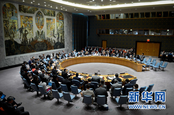 7月18日,聯(lián)合國安理會在紐約聯(lián)合國總部就烏克蘭局勢舉行緊急會議。聯(lián)合國安理會18日就烏克蘭局勢舉行緊急會議。安理會本月輪值主席、盧旺達常駐聯(lián)合國代表加薩納在會議前向媒體宣讀聲明,呼吁根據(jù)國際民航準則對馬航空難進行全面、徹底、獨立的國際調(diào)查,并追究相關(guān)責任。新華社記者牛曉雷攝