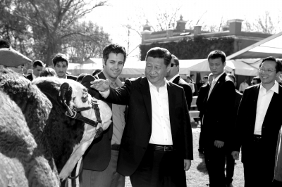 ????習(xí)近平受到農(nóng)場(chǎng)主莫內(nèi)塔一家熱情迎接。莫內(nèi)塔向習(xí)近平介紹,莊園畜養(yǎng)牲畜近萬(wàn)頭,培育了許多優(yōu)秀種馬和肉牛品種。習(xí)近平邊聽(tīng)邊詳細(xì)詢(xún)問(wèn)牲畜養(yǎng)殖和農(nóng)場(chǎng)經(jīng)營(yíng)情況。習(xí)近平指出,阿根廷是農(nóng)牧業(yè)大國(guó),農(nóng)業(yè)現(xiàn)代化水平和科技水平很高。中國(guó)也是農(nóng)業(yè)大國(guó)。中國(guó)要發(fā)展,必須首先解決好13多億人口吃飯問(wèn)題。中國(guó)高度重視農(nóng)業(yè),堅(jiān)持立足國(guó)內(nèi)、確保糧食自給自足,同時(shí)積極利用國(guó)際市場(chǎng),參與國(guó)際合作,調(diào)劑農(nóng)副產(chǎn)品。中方愿意同阿方加強(qiáng)農(nóng)業(yè)領(lǐng)域合作,擴(kuò)大農(nóng)產(chǎn)品貿(mào)易。