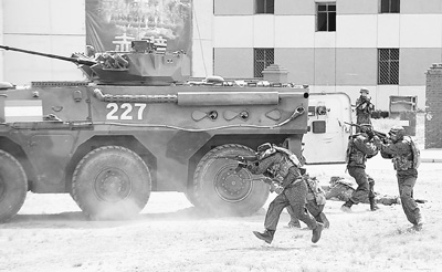 2014年8月21日,塔吉克斯坦參演部隊在“和平使命—2014”聯(lián)合反恐軍事演習前期聯(lián)合戰(zhàn)術(shù)協(xié)同訓練中包圍“恐怖分子”盤踞地。