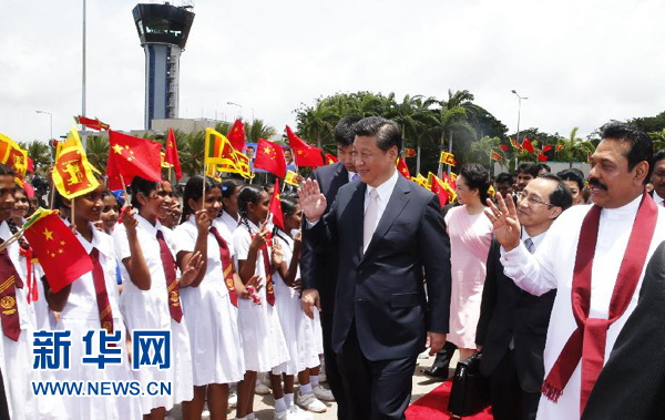 ????新華網(wǎng)科倫坡9月17日電(記者黃海敏 楊梅菊)國家主席習(xí)近平17日結(jié)束對斯里蘭卡的國事訪問,啟程前往艾哈邁達巴德開始對印度進行國事訪問,斯里蘭卡總統(tǒng)拉賈帕克薩專程到機場送行。