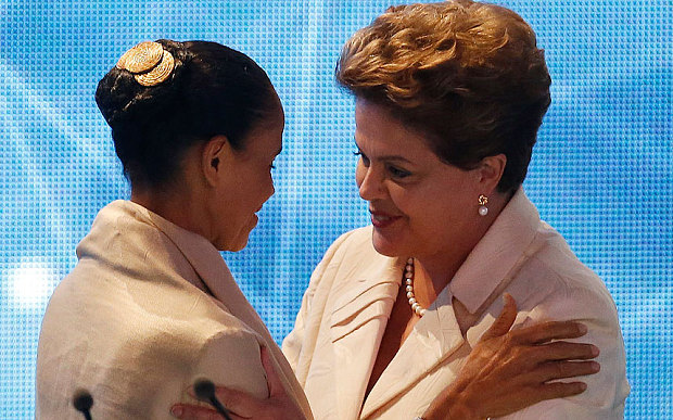????其實(shí),席爾瓦的政治生涯也極具戲劇性并充滿意外。起先參與政治活動(dòng)的她,后來又成了一名環(huán)境保護(hù)主義者;在擔(dān)任多年的國會(huì)議員后,她于2003年在盧拉政府中出任環(huán)境部長(zhǎng)。2009年8月前,席爾瓦與羅塞夫同屬勞工黨;2010年,席爾瓦代表綠黨參選總統(tǒng)并落選。在今年的巴西總統(tǒng)選舉中,加入社會(huì)黨的席爾瓦本來是作為副總統(tǒng)競(jìng)選人陪伴坎波斯,但由于坎波斯在8月份墜機(jī)身亡,席爾瓦在黨內(nèi)被選為總統(tǒng)競(jìng)選人。