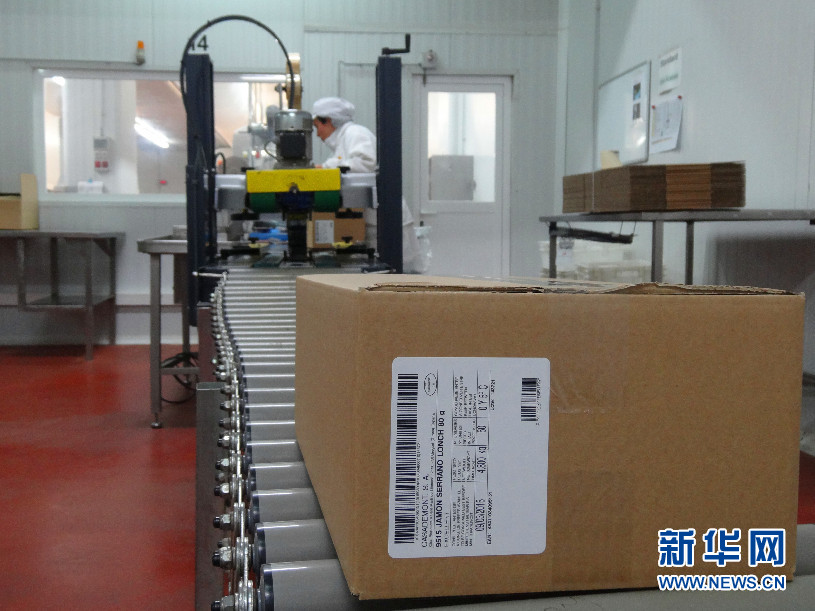 裝滿切片火腿的紙盒。我們可以看到,處于食品加工安全和衛(wèi)生的考慮,切片和裝盒是在兩個不同的房間里。