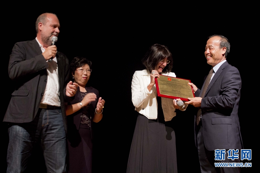 巴塞羅那市政府代表向巴塞羅那孔子學(xué)院頒獎(jiǎng)。新華網(wǎng)發(fā) Xesco攝
