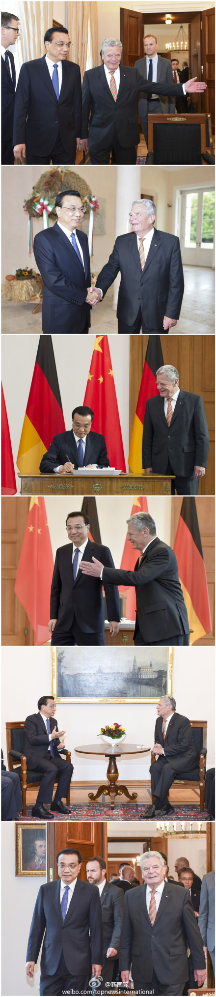 ????新華網(wǎng)北京10月10日電 據(jù)新華社“新國(guó)際”微博報(bào)道,10月10日上午,國(guó)務(wù)院總理李克強(qiáng)在柏林會(huì)見(jiàn)德國(guó)總統(tǒng)高克。李克強(qiáng)說(shuō),在中德雙方的共同努力下,兩國(guó)合作的深度和廣度達(dá)到前所未有的水平。中方愿同德方一道,充分理解對(duì)方國(guó)情,筑牢中德友好的基石,開(kāi)辟兩國(guó)全方位戰(zhàn)略伙伴關(guān)系更加美好的前景。