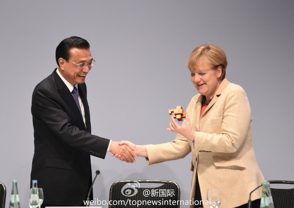 ????新華網(wǎng)北京10月11日電? 據(jù)新華社“新國際”微博報道,10日的中德經(jīng)濟技術論壇上,李克強總理將一精巧的魯班鎖送給默克爾。他說,這是天津中德職業(yè)技術學院師生共同創(chuàng)作的作品,希望我送給默克爾總理。解開魯班鎖是解決一道難題,相信中德之間的合作能不斷創(chuàng)新,共同破解世界性難題,開啟美好的未來。
