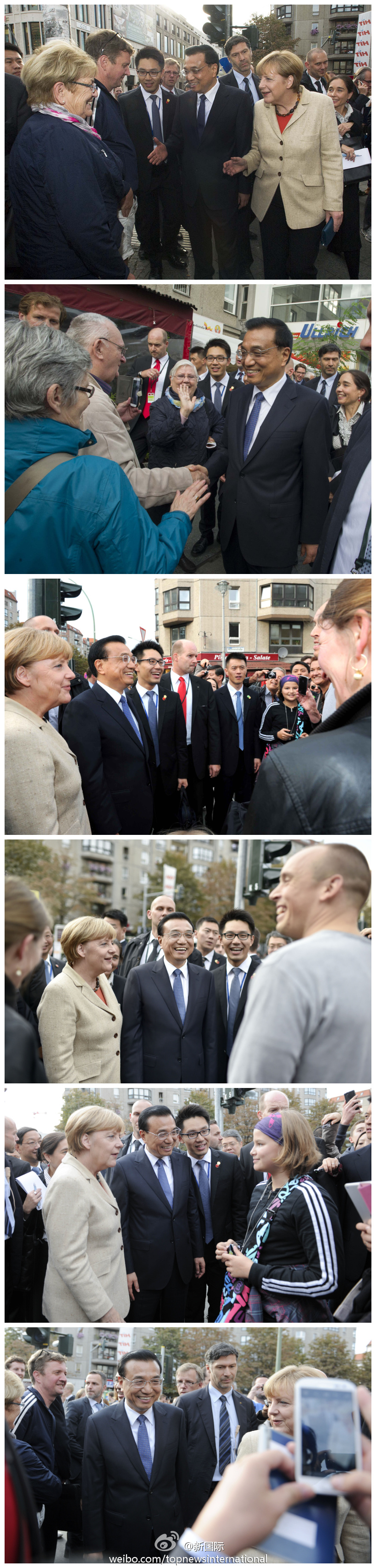 ????新華網(wǎng)北京10月11日電 據(jù)新華社“新國際”微博報道,中國國務(wù)院總理李克強(qiáng)和德國總理默克爾10日下午在共同會見記者后,共同乘車前往出席中德經(jīng)濟(jì)技術(shù)論壇,途中他們臨時停車,與在街頭的德國民眾親切交流互動。