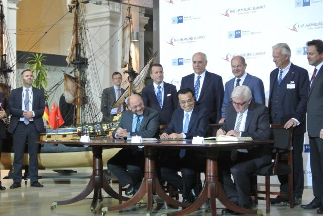 “我很贊賞漢堡峰會(huì)用了這樣一個(gè)主題——China meets Europe. 中國和歐洲相遇的結(jié)果是什么?是幸運(yùn)?!笨藦?qiáng)總理說。