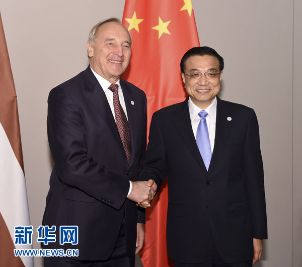 ??? 10月17日,中國國務(wù)院總理李克強在意大利米蘭會見拉脫維亞總統(tǒng)貝爾津什。新華社記者李學(xué)仁攝