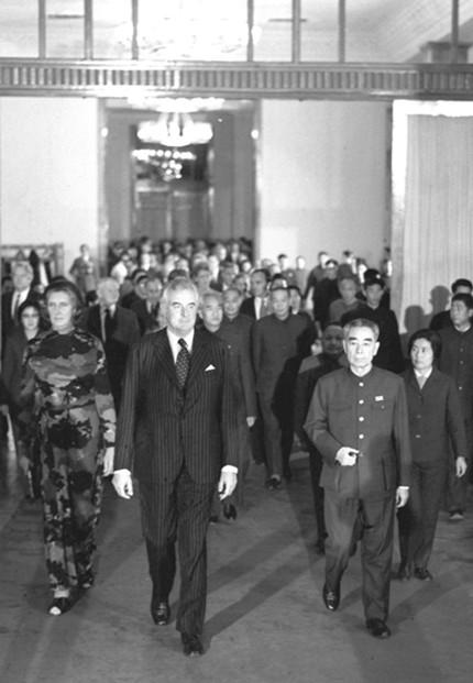 ????惠特拉姆被澳大利亞人譽(yù)為“澳中建交之父”。幾乎與基辛格博士秘密訪華同時(shí),惠特拉姆1971年7月率澳大利亞工黨代表團(tuán)訪華?;萏乩反文贲A得選舉并出任澳大利亞總理后,立即推動(dòng)了澳大利亞與新中國正式建交,使澳大利亞成為較早與新中國建交的西方國家之一。