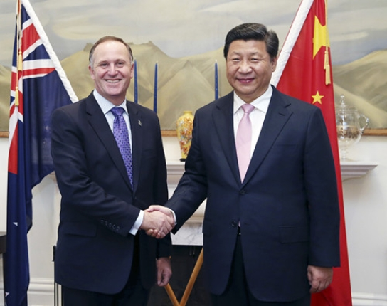 ????既是“一家人”,就不說兩家話。習(xí)主席中午在邁特帕里總督為他舉行的歡迎宴會上對中新合作給予了高度評價,如數(shù)家珍般列舉了中新合作中的幾個“第一”:中國已經(jīng)成為新西蘭第一大貿(mào)易伙伴和第一大海外留學(xué)生來源地;新西蘭也成為第一個承認中國完全市場經(jīng)濟地位、第一個同中國簽署自由貿(mào)易協(xié)定的發(fā)達國家。