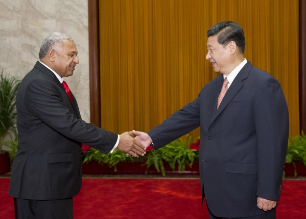 ????(圖為2013年5月29日,國家主席習近平在北京人民大會堂會見斐濟總理姆拜尼馬拉馬。新華社記者黃敬文攝)