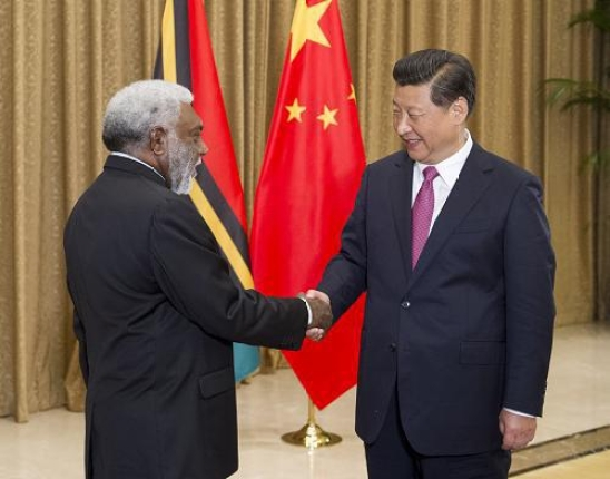 ????(圖為2014年 8月17日,國家主席習近平在南京會見瓦努阿圖總理納圖曼。新華社記者王曄攝)