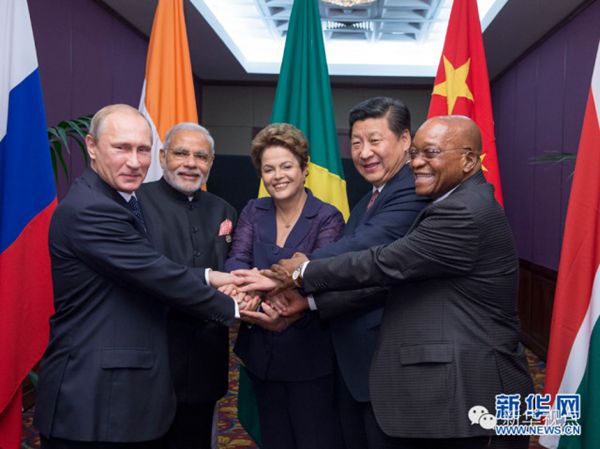 ????——金磚國家領(lǐng)導(dǎo)人非正式會晤一致同意要加強全方位合作,落實好巴西福塔萊薩會晤成果,加快推進金磚國家開發(fā)銀行和應(yīng)急儲備安排有關(guān)建設(shè)進程,密切溝通和協(xié)調(diào),維護共同利益。