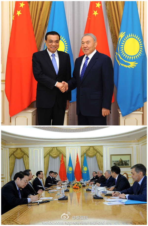 ????新華網北京12月15日電? 據(jù)新華社“新國際”微博報道,哈薩克斯坦總統(tǒng)納扎爾巴耶夫一般不在周末會客??墒菫榱藲g迎遠道而來的中國總理,他打破了自己的慣例,于當?shù)貢r間14日(周日)下午5點,在阿斯塔納總統(tǒng)府三層金廳高規(guī)格接待了首次訪哈的李克強總理,兩人同聲傳譯足足談了一個半小時。