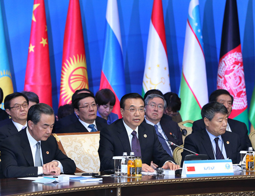 ?。ǎ玻埃保茨辏保苍拢保等?,李克強(qiáng)出席上海合作組織成員國(guó)政府首腦理事會(huì)第十三次會(huì)議。新華社記者龐興雷攝。)