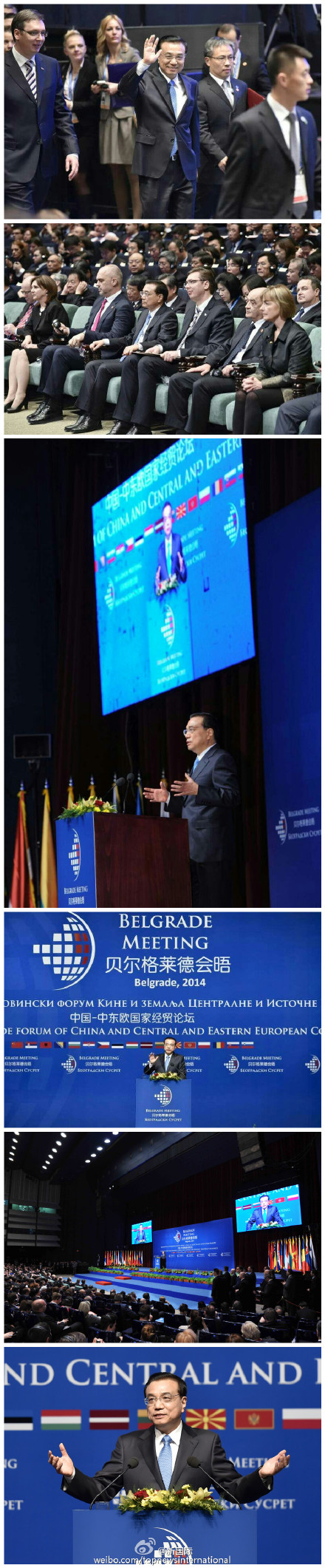 ??? 新華網(wǎng)北京12月17日電 據(jù)新華社“新國(guó)際”微博報(bào)道,當(dāng)?shù)貢r(shí)間16日下午,李克強(qiáng)在貝爾格萊德出席了中國(guó)-中東歐國(guó)家第四屆經(jīng)貿(mào)論壇開幕式并致辭。總理表示,加強(qiáng)同中東歐國(guó)家合作,有利于推進(jìn)歐洲一體化進(jìn)程,實(shí)現(xiàn)中國(guó)和中東歐國(guó)家的互補(bǔ)。來自中國(guó)和中東歐16個(gè)國(guó)家的千余名企業(yè)代表參加了論壇。