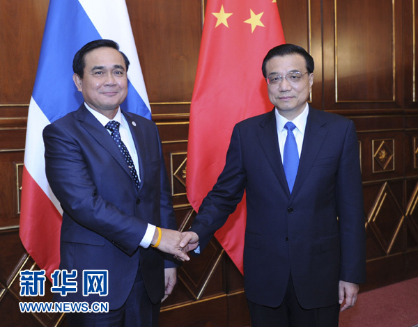 ????時(shí)針撥回10月16日,正在米蘭出席第十屆亞歐首腦會(huì)議的克強(qiáng)總理會(huì)見(jiàn)了同來(lái)參會(huì)的巴育。這是繼泰國(guó)政局變動(dòng)、中泰鐵路合作一度被擱置后兩國(guó)總理的首次會(huì)面。